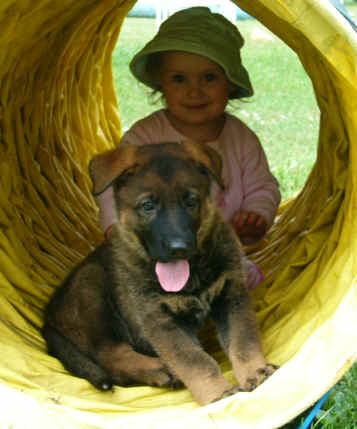 Asha @ 6 1/2 weeks with Niah in the tunnel |
