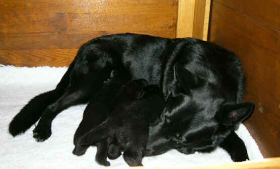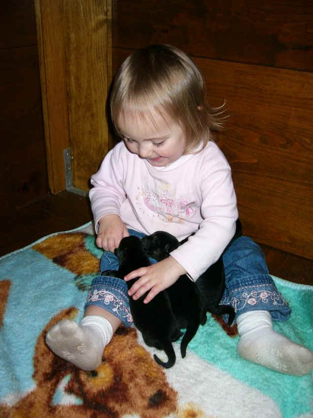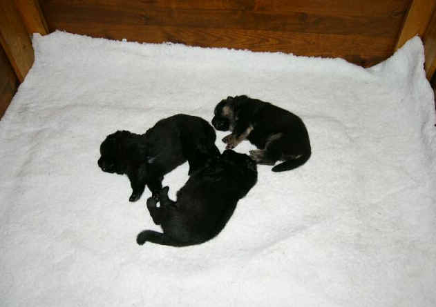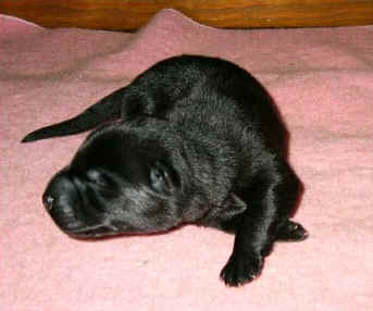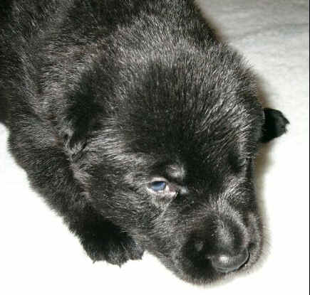 Ok - I did my best .... It is hard to take pictures of black puppies!
