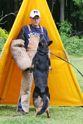 Xantina or "Xeta" was imported from Thomas Lapp at 11 months of age. She is the fastest shepherd we've ever owned or seen. Her striking power in the bite work takes most helpers off their feet. She is incredibly intense with extreme ball drive and excellent protection work. Xeta's tracking is concentrated and focused - making her a super all-around competition dog for the sport of Schutzhund. Her obedience is quick and flashy - we are looking forward to showing her off and titling her in a variety of venues in 2008.